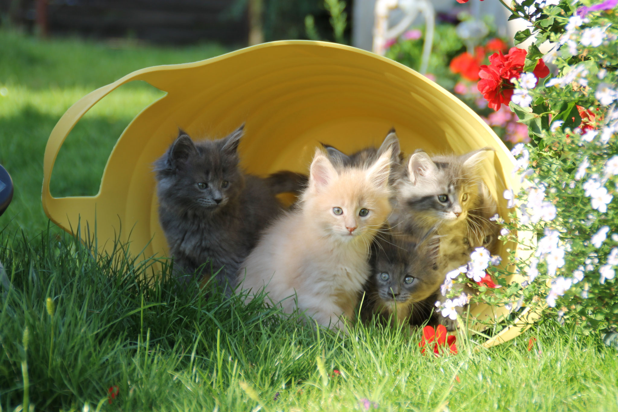Maine-Coons zeichnen sich durch ihren großrahmigen Körper und ihr sanftmütiges Wesen aus. Sie sind ausgesprochen freundliche, anhängliche und liebevolle Tiere und gelten allgemein als sehr sozial. Jedoch sind die großen Schmusetiger, keinesfalls Tiere die nur langweilig in der Gegend herum liegen, sondern zudem auch sehr begabte Jäger. Es handelt sich um sehr intelligente und verspielte Katzen, die auch ab und an gern mal mit Wasser spielen und planschen. Somit bieten sie durch ihre Wildheit gepaart mit diesem Sanftmut den perfekten Wegbegleiter bzw. das perfekte Haustier für jeden. ;)